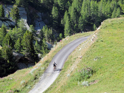 a salire decisamente con un paio di tornanti, poi prosegue più dolcemente