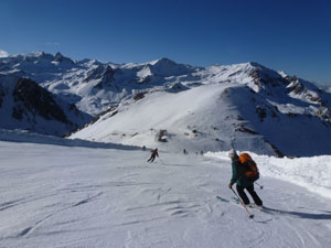 La Punta Bagnà è una gita che si svolge prevalentemente sugli impianti di Val Frejus. Tuttavia, gli spazi sono ampi e si riescono a trovare angoli tranquilli e pendii "appartati". Offre un bel panorama sulla Punta del Frejus, sull'Argentier (Punta Nera) sul Thabor e sulle montagne della Vanoise.![]()