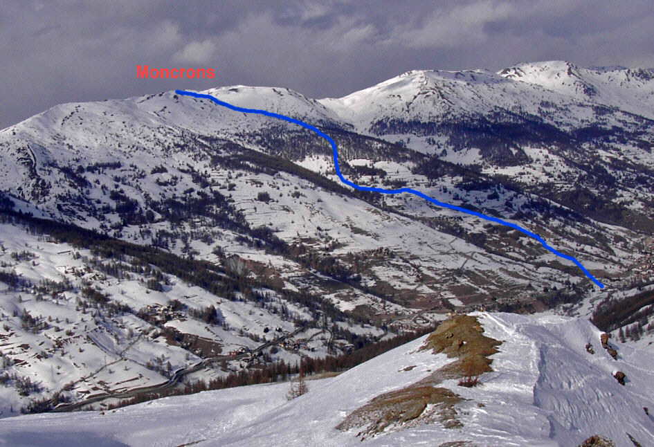 attraversare la statale del Sestriere, salire per gli ampi pendii che