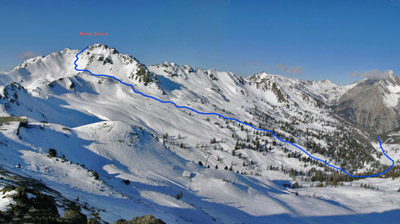 Il Monte Gimont è una bella montagna, notevolmente isolata, sulla cresta di confine italo-francese compresa tra il col Gimont ed il Collette Vert.