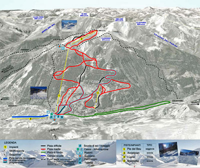 Itinerario Ferrere Da Bersezio attraversare il ponte sul fiume Stura e procedere lungo la strada in direzione del colle di Ferrere 2049m. Proseguire lungo la strada nel vallone di Ferrere in direzione della Bassa di Colombart, dopo circa un chilometro da Ferrere, lasciare la strada sulla destra puntando all'evidente colletto tra le Rocce Andelplan e la Quota 2464m. Raggiunto il colletto verso sinistra per cresta si arriva in cima. Itinerario Piste Da Bersezio seguire le piste a scelta fino all'arrivo dello ski-lift del vallone di Andelplan. Discesa Dalla cima scendere inizialmente verso Nord e poi proseguire in direzione Est verso la testa del vallone dell'Andelplan, scendere lungo il vallone fino a reperire la strada che riporta a Bersezio; in alternativa scendere lungo le piste di sci. |