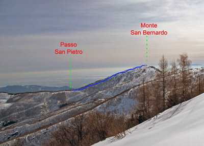 la pista di fondo battuta che arriva dal Santuario di Valmala. Seguire