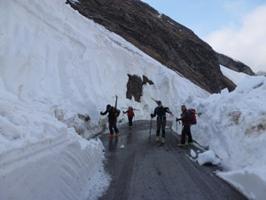 La Sella d'Asti è una piatta e poco marcata depressione di sfasciumi a Sud-Est della Cima omonima e precisamente tra il torrione Gina ed il dosso di pietrame (ometto) a 3144m oltre il quale, si apre una seconda ma più marcata depressione quasi parallela alla Sella d'Asti. Entrambe pongono in comunicazione il vallone Ruine con i valloni Giarus e Brusalana . Qui si descrive la salita dal vallone del Giarus