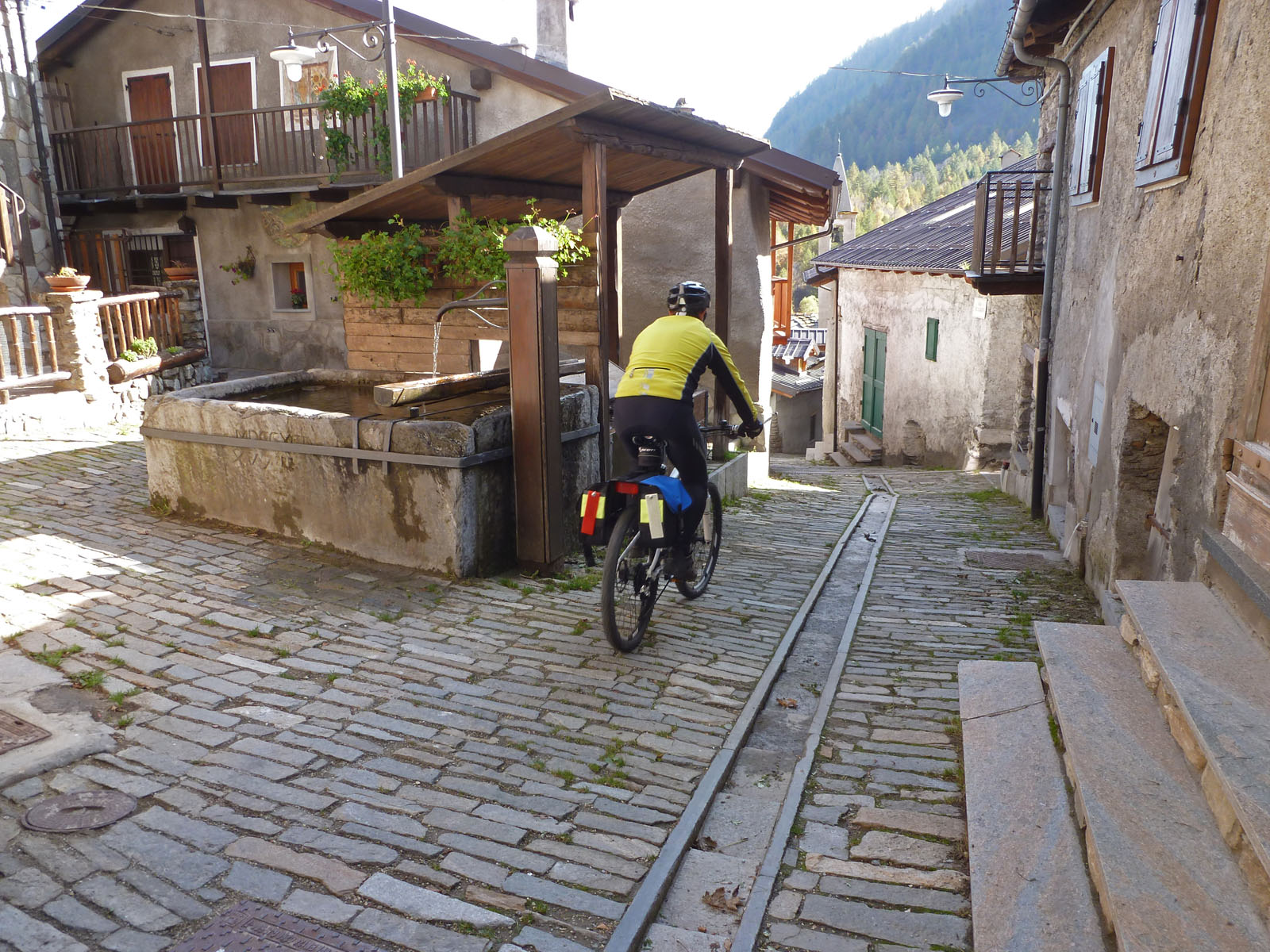 imboccando una ripida mulattiera selciata, ma con scalini tra le case;