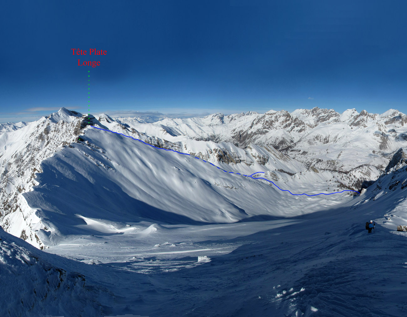 Il punto culminante della Tête de Plate Longe è formato da due piccole e vicine elevazioni sulla costiera della Tête de Siguret, spartiacque tra Ubayette ed Abries. Grazie alla relativa sicurezza del percorso, questo itinerario è da preferire tra quelli della sinistra orografica dellUbayette, quando il manto nevoso è instabile.