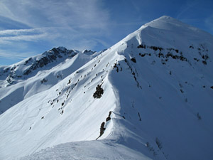 Ci sono almeno tre possibilità di discesa. Lungo l'itinerario di salita, oppure scendere a Sud-Est in direzione del Monte Creusa e per ripidi pendii al fondo del vallone di Pian Medoro; da qui si può raggiungere direttamente Limonetto in direzione Nord oppure con più lungo spostamento verso gli impianti sciistici sul versante opposto della valle e poi sci a spalla per 10 minuti su strada asfaltata fino all'auto.