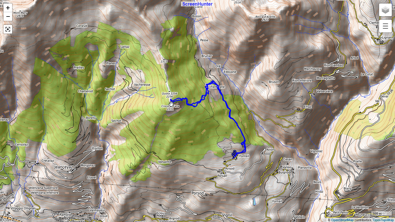 - Partenza: Avisod 1324m, Fonteil 1426m