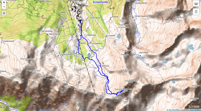 Lungo l'itinerario di salita, ma scendendo dal colle Tsa Setze.