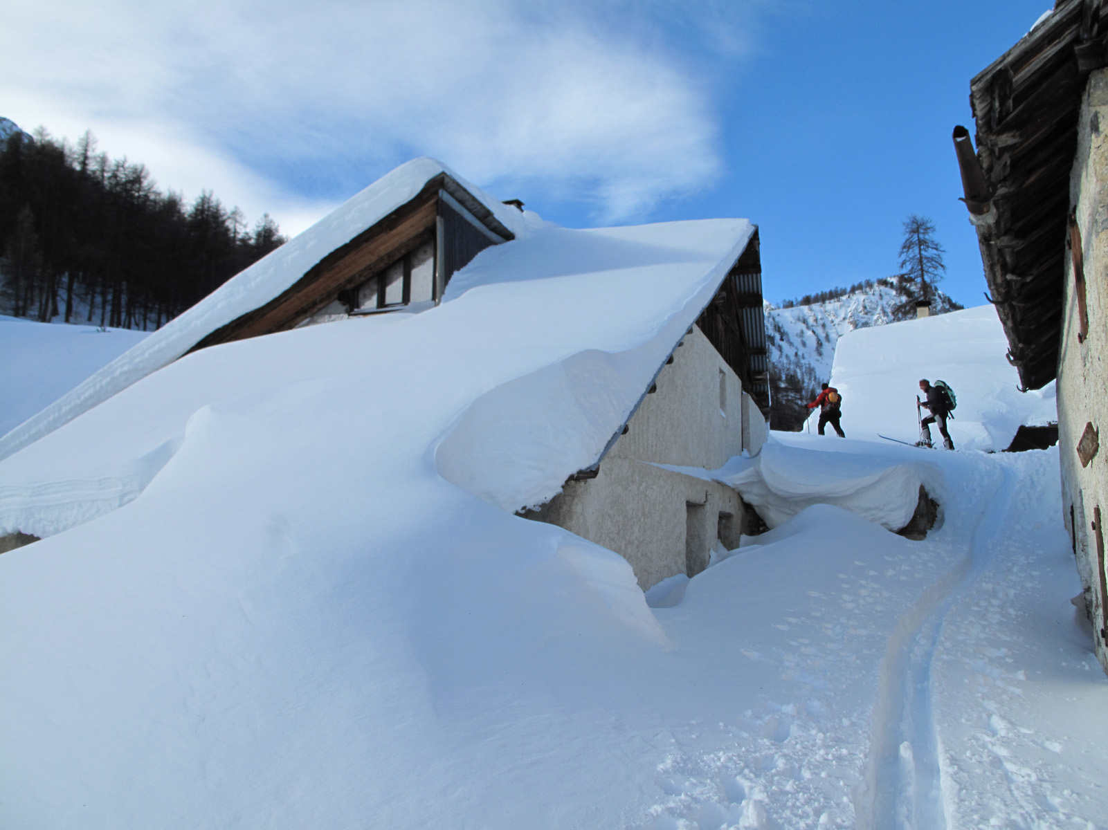 Itinerario Dal parcheggio tornare indietro verso Briancon e prendere subito dopo il ponte la carrozzabile innevata sulla destra, che dopo 4,6 km raggiunge l'abitato di Granon 1910m. Salire utilizzando alcune scorciatoie alla bella borgata delle Case Granon. Continuare lungo il fondovalle, sulla sinistra idrografica del torrente,attraverso una pineta. Al suo termine 2150m voltare a sinistra e per ampi pendii raggiungere il colle, lasciando sulla sinistra un bunker. Discesa Lungo l'itinerario di salita. |