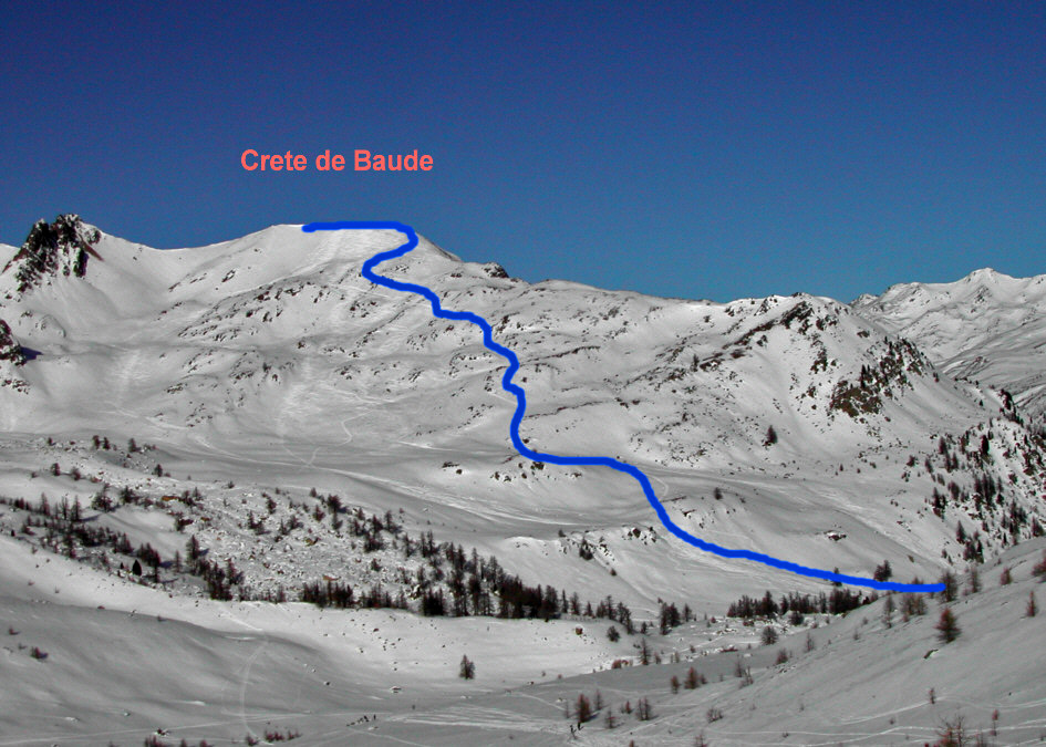 La Crête de Baude è una gita molto percorsa, corta e poco difficile. La neve si trasforma abbastanza velocemente essendo esposta a Sud. Offre una spettacolare vista sulla Grand Area.