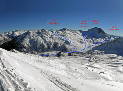 La Grand Area è un bell'itinerario, tra i più interessanti, della Valle della Clarèe. Offre una spettacolare vista sulla Montagne des Agneaux con la Barre des Ecrins dietro.